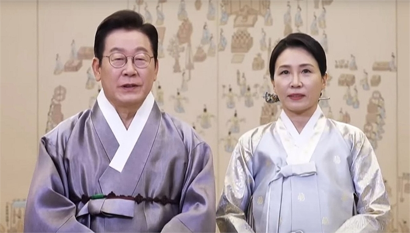 추석 영상 메시지 전하는 이재명 대통령과 김혜경 여사 [자료사진=연합뉴스]