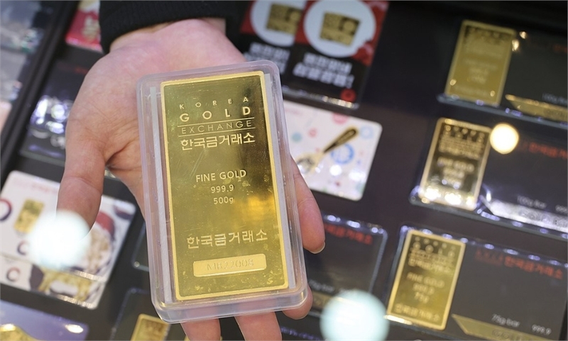 인천 중구 한국금거래소 영종도점에 전시된 골드바 [자료사진=연합뉴스]