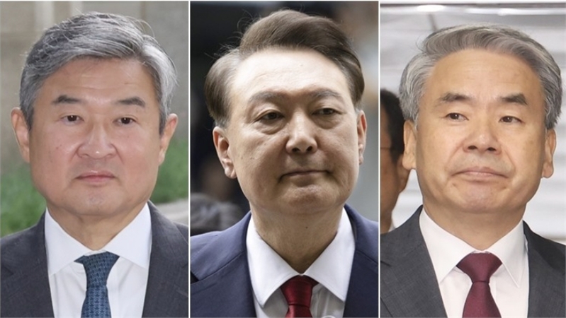 조태용 전 국가안보실장(왼쪽부터)·윤석열 전 대통령·이종섭 전 국방부 장관 [자료사진=연합뉴스]