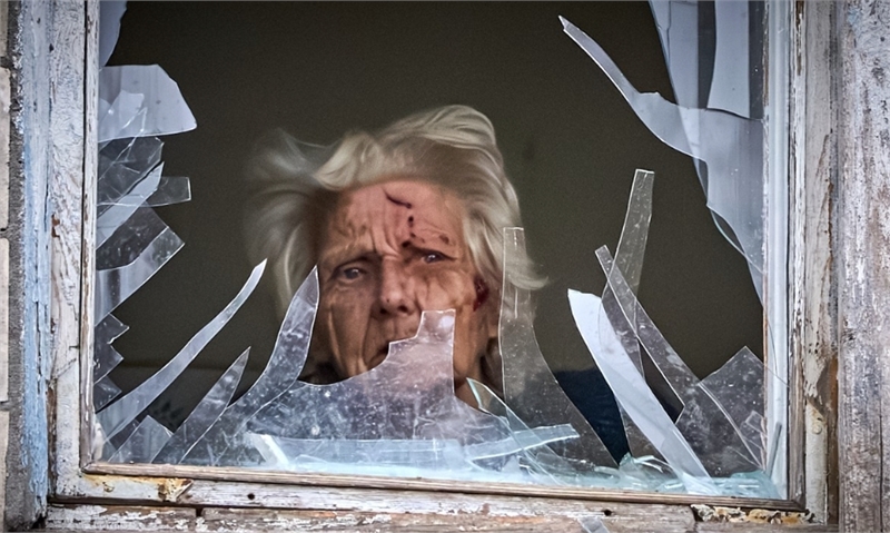 부상당한 채 창밖 내다보는 우크라이나 주민 [자료사진=연합뉴스]